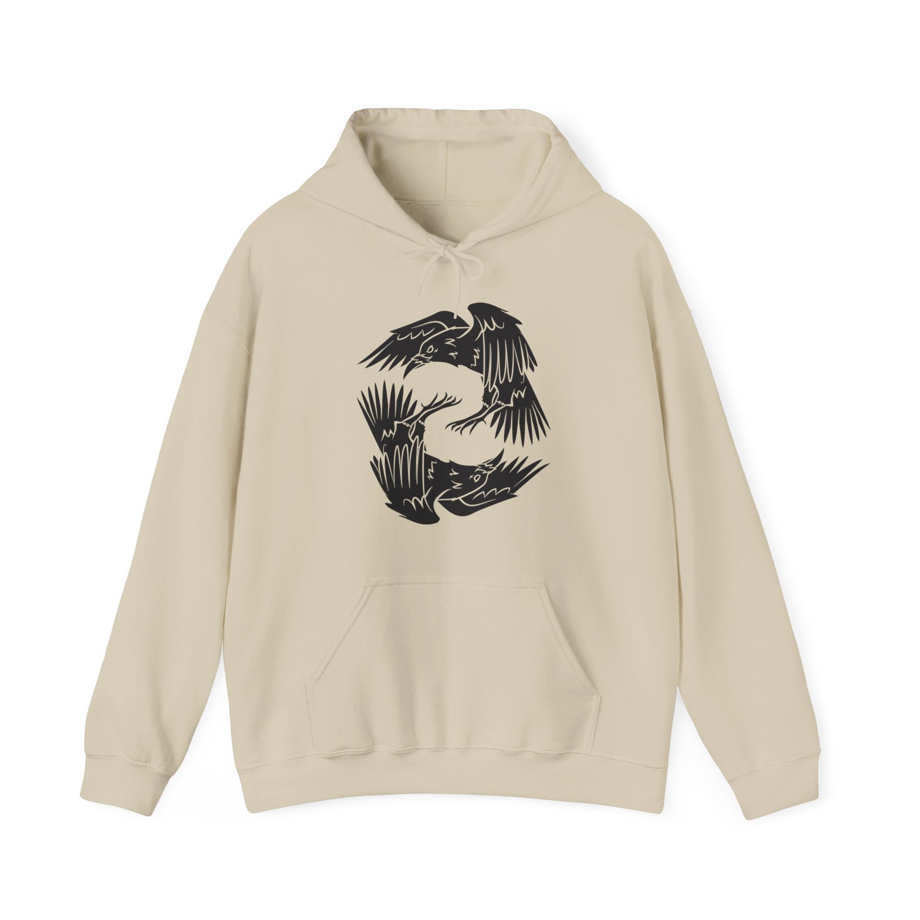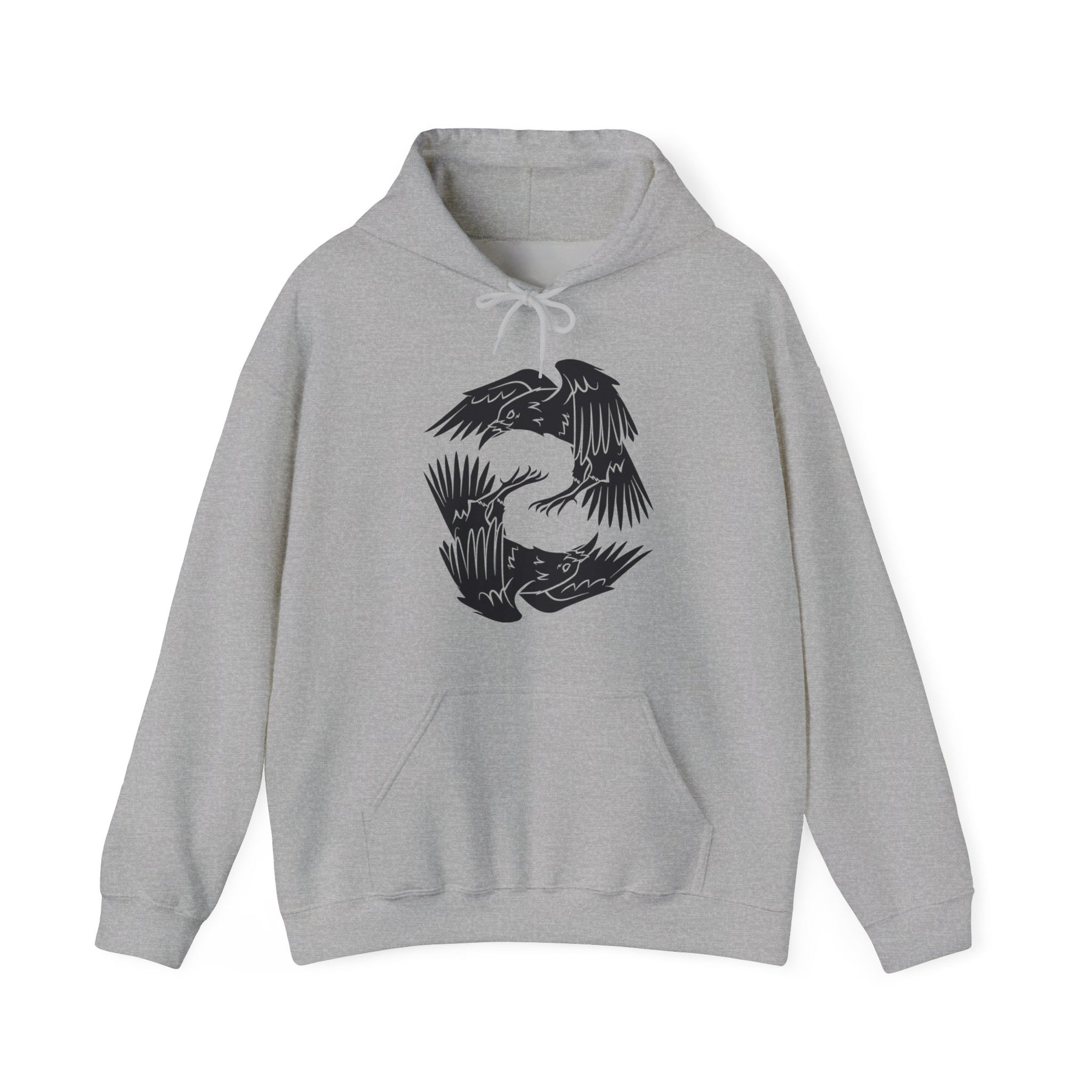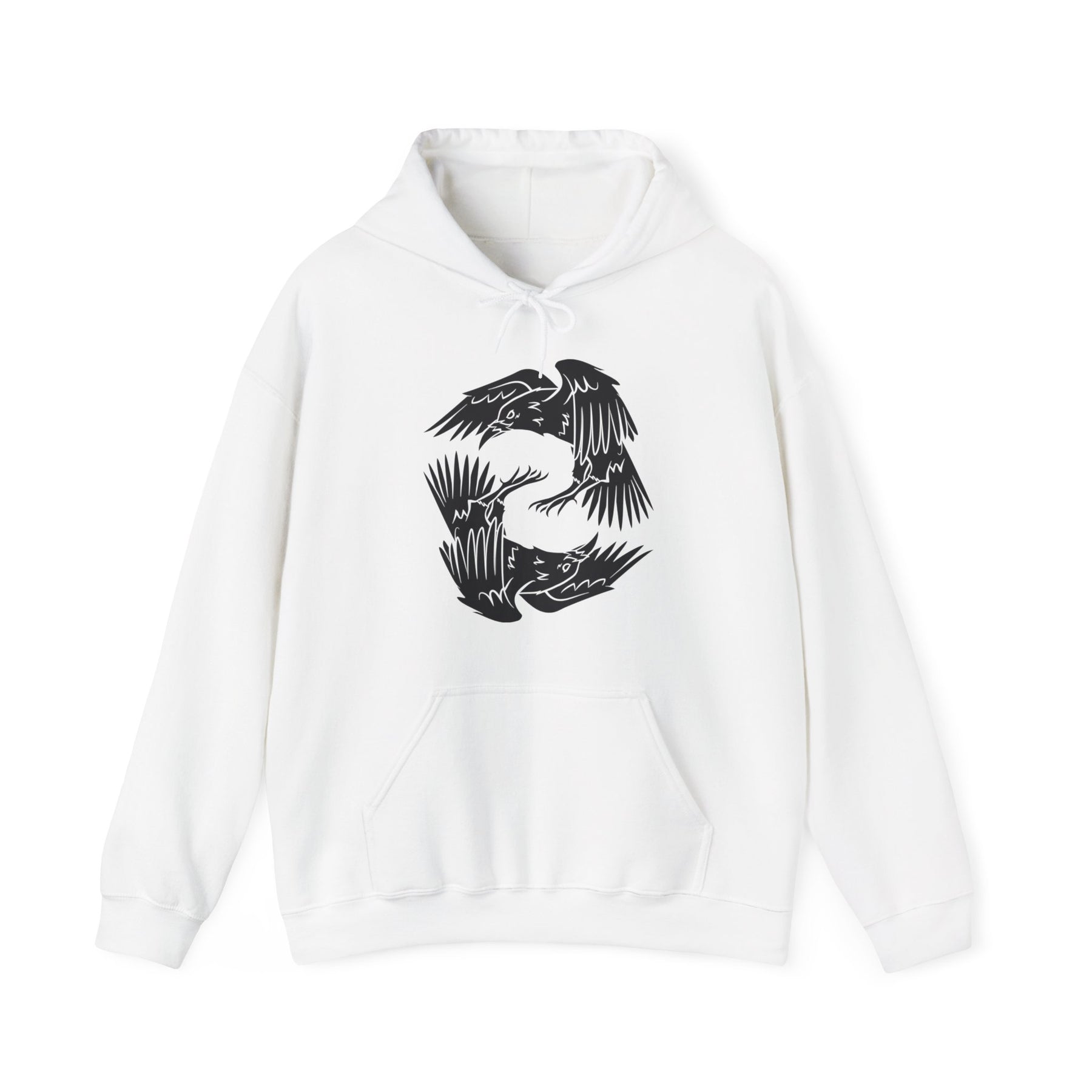 Crafted for comfort, this Odin's ravens (Huginn and Muninn) hooded sweatshirt is perfect for relaxing. Once put on, it will be impossible to take off.