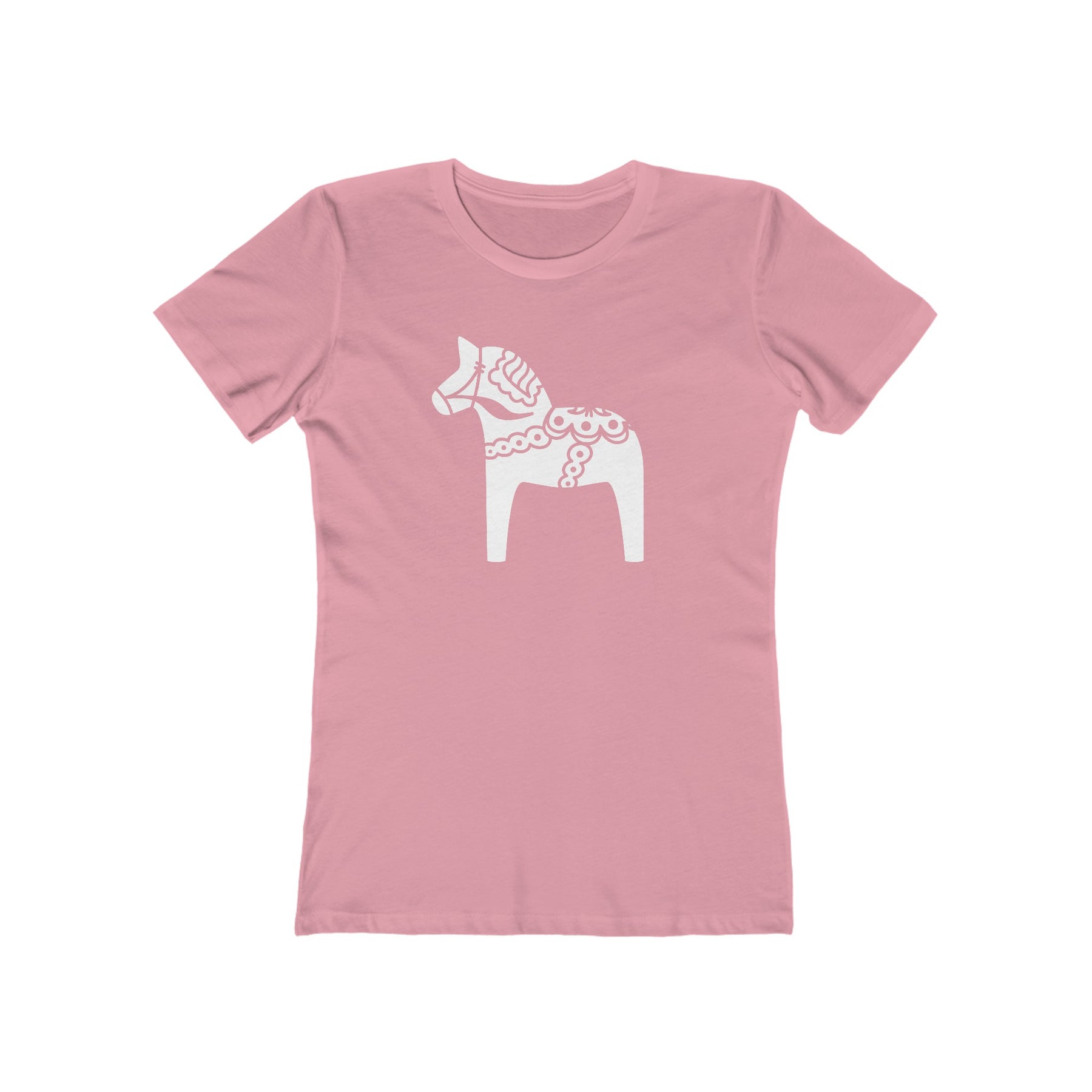 Our women's, boyfriend fit Swedish Dala horse tee provides a fashionably casual look. The t-shirt has shorter sleeves and a slimmer cut, and a longer body length than most women's shirts.