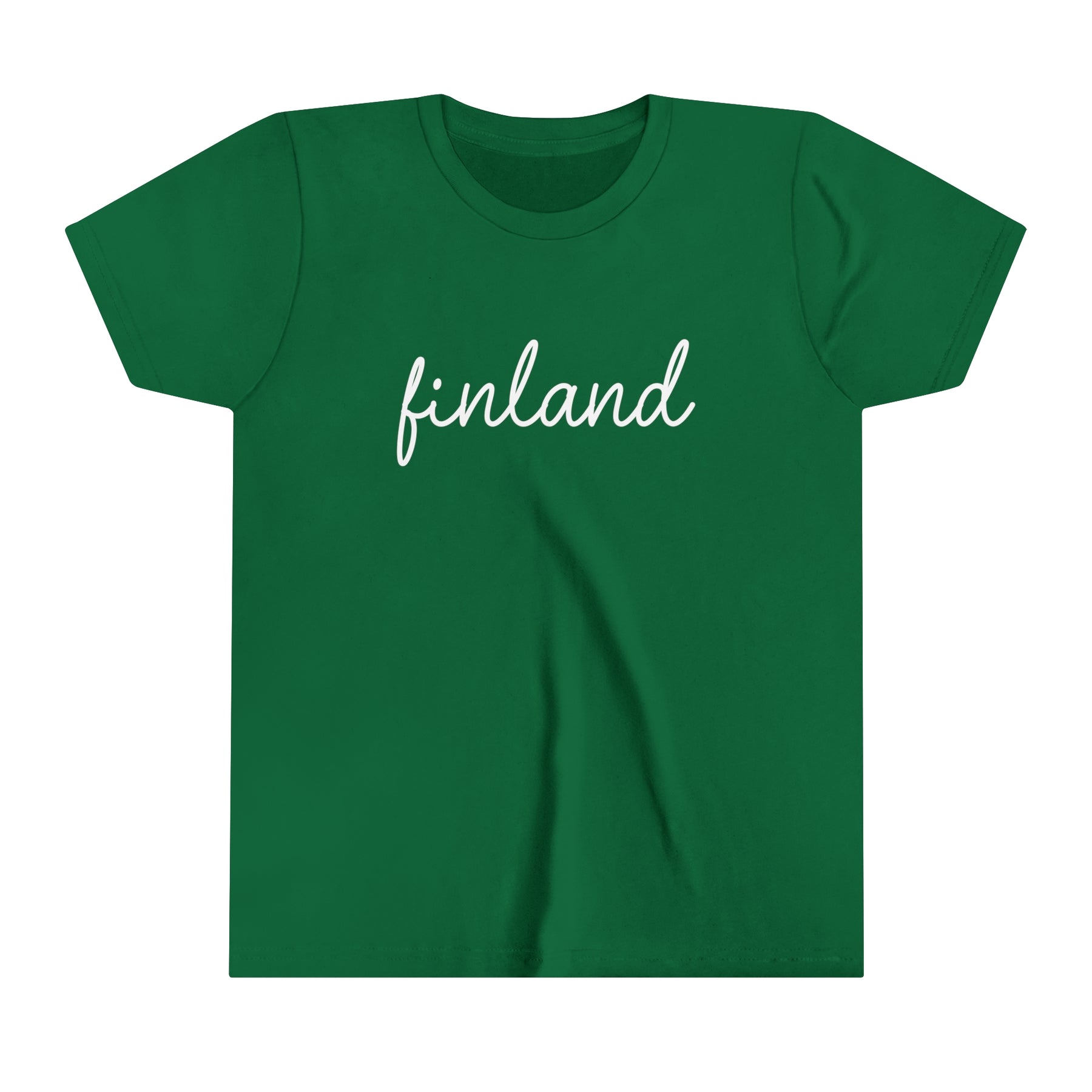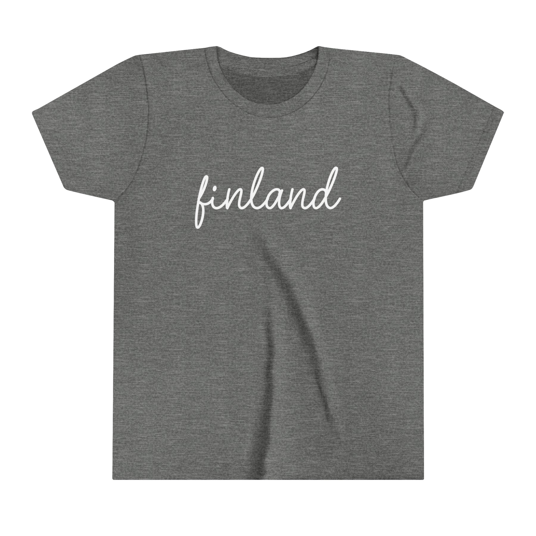 Kids will love this Finland script font short sleeve tee. This lightweight (4.0 oz) side-seamed shirt maximizes comfort all day long.