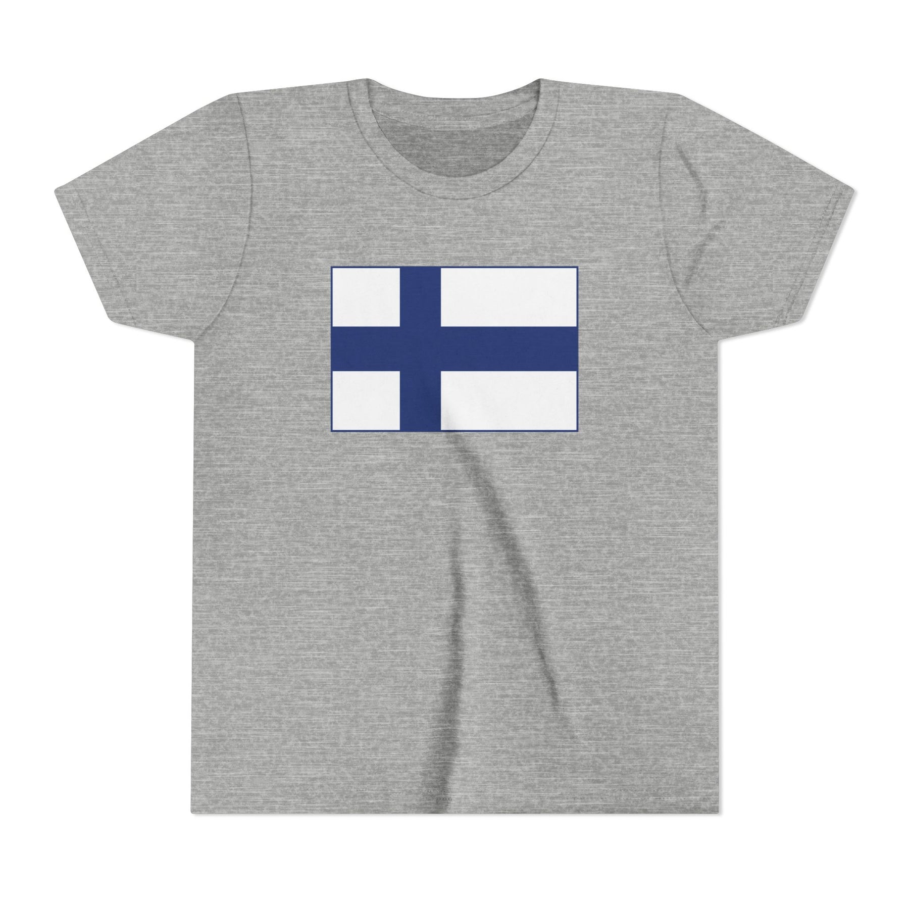 Kids will love this Finnish flag short sleeve tee. This lightweight (4.0 oz) side-seamed shirt maximizes comfort all day long.