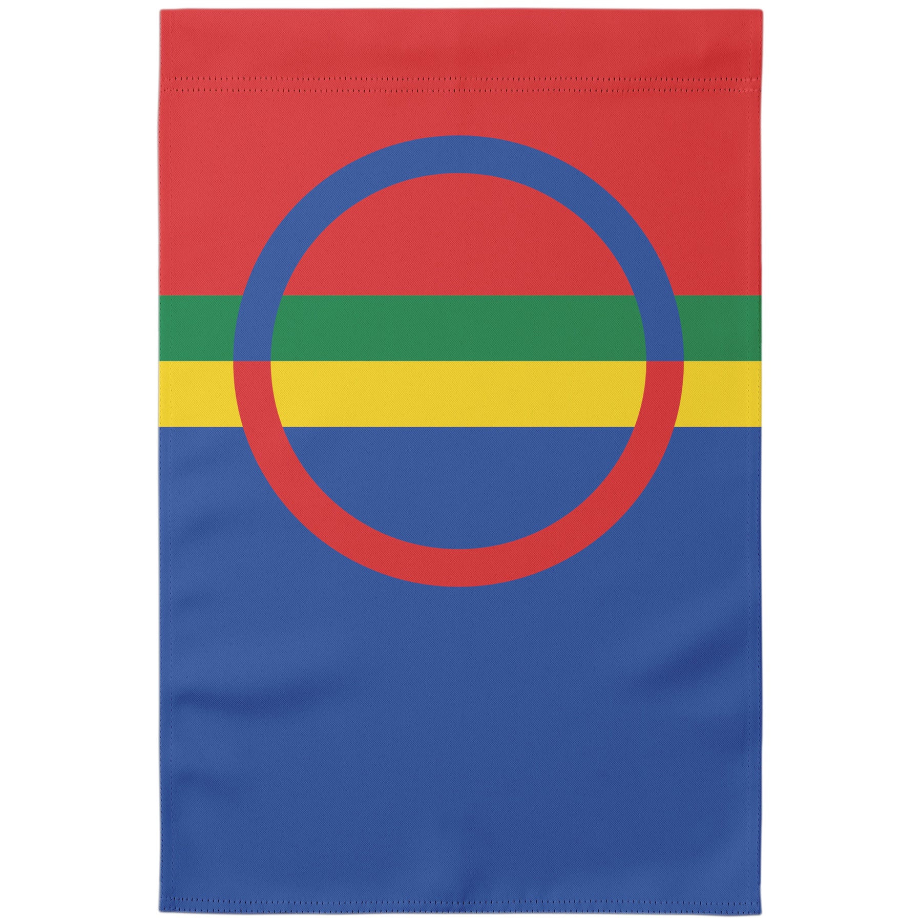 Show your Sami pride with a garden flag! Yard flags can be used for multiple occasions & celebrations. Flags are printed on both sides, and measure 12" x 18". 1.25" wide top pole slot for flag stand. Machine wash gentle cycle hand dry. Available with or without a stand.