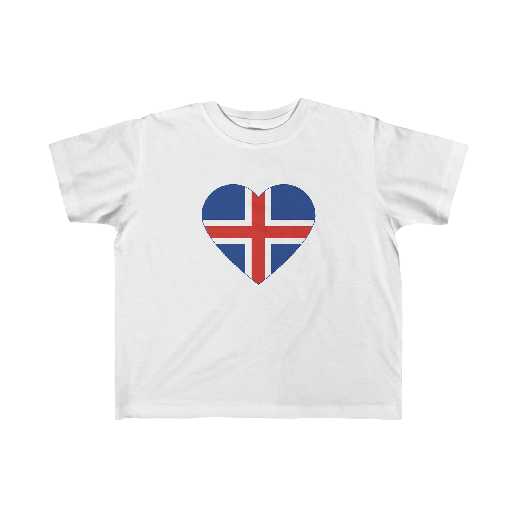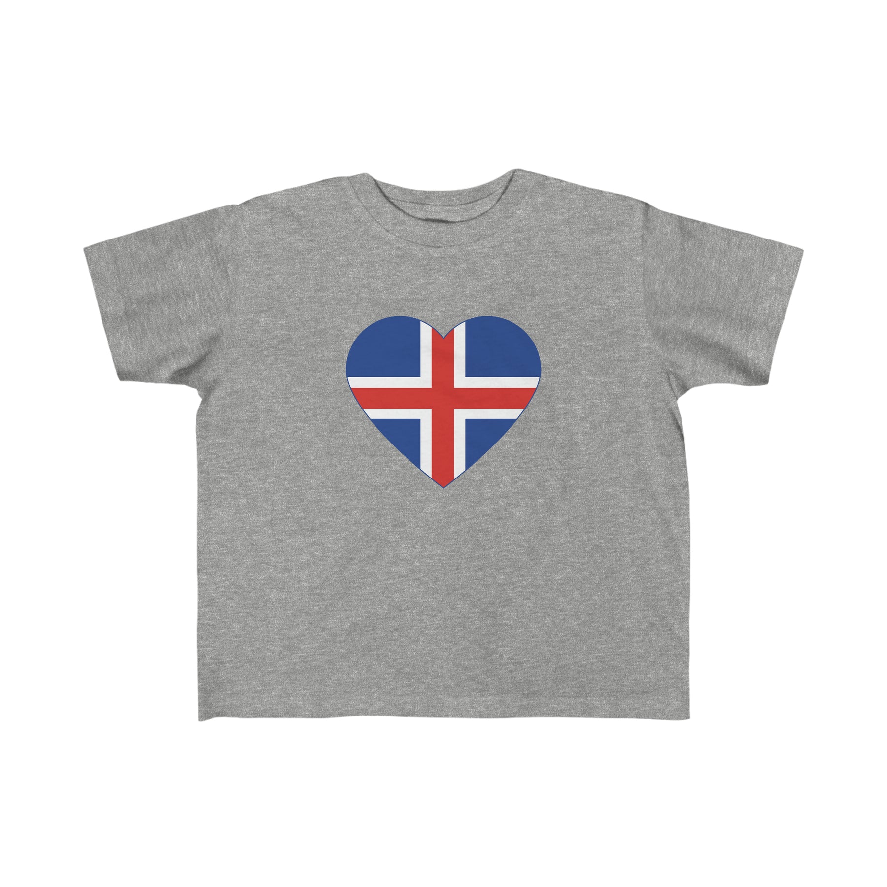 This Icelandic flag heart toddler t-shirt holds up to the toughest of play, yet still feels soft against toddler skin.