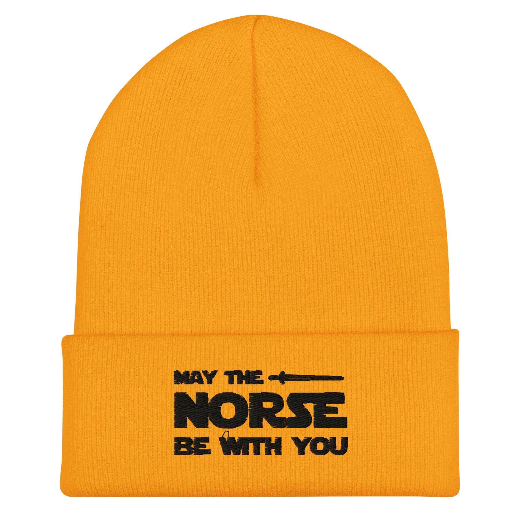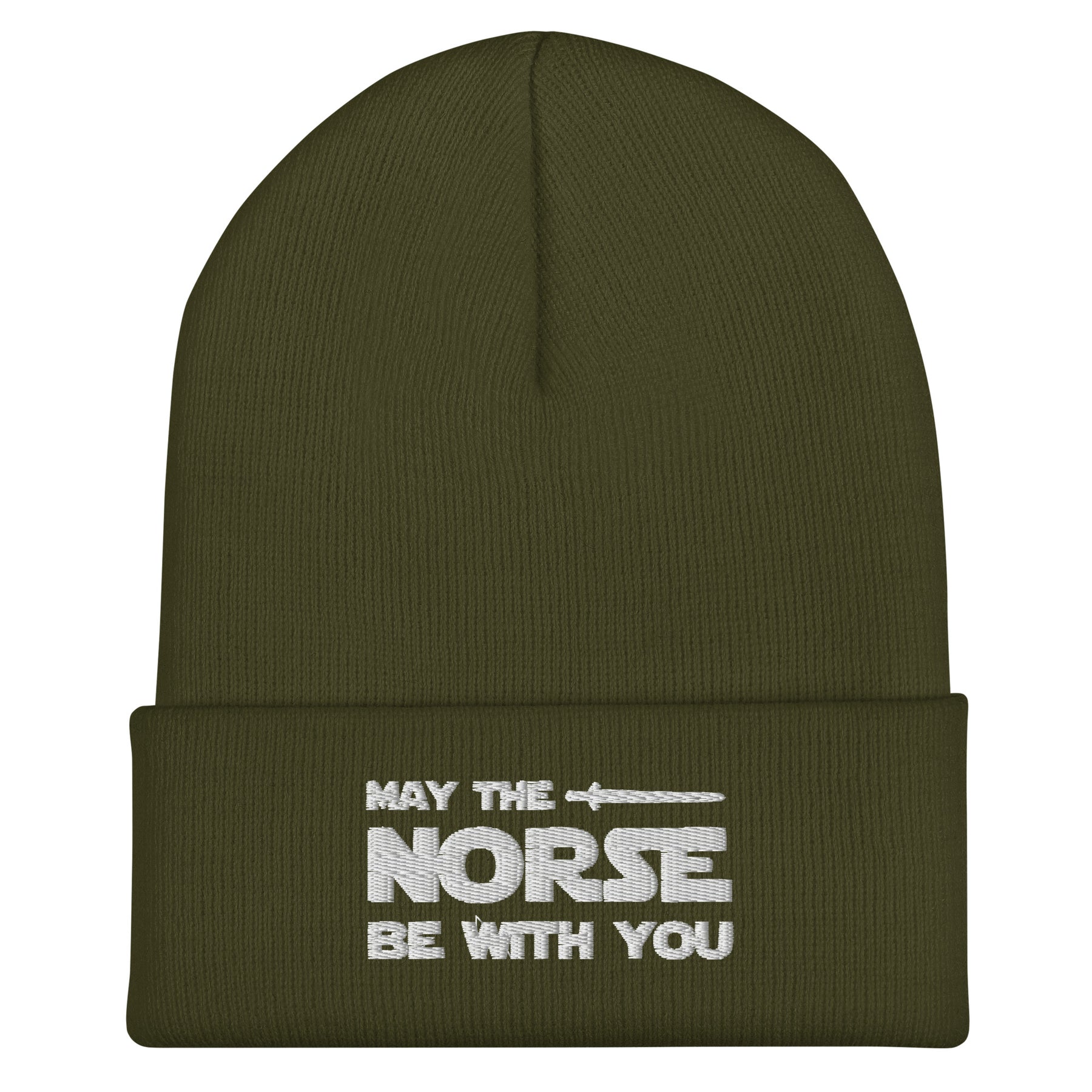 Stay warm this winter with our May The Norse Be With You knit beanie hat! This embroidered beauty has a snug fit that ensures you're going to feel cozy and warm whatever you're doing.