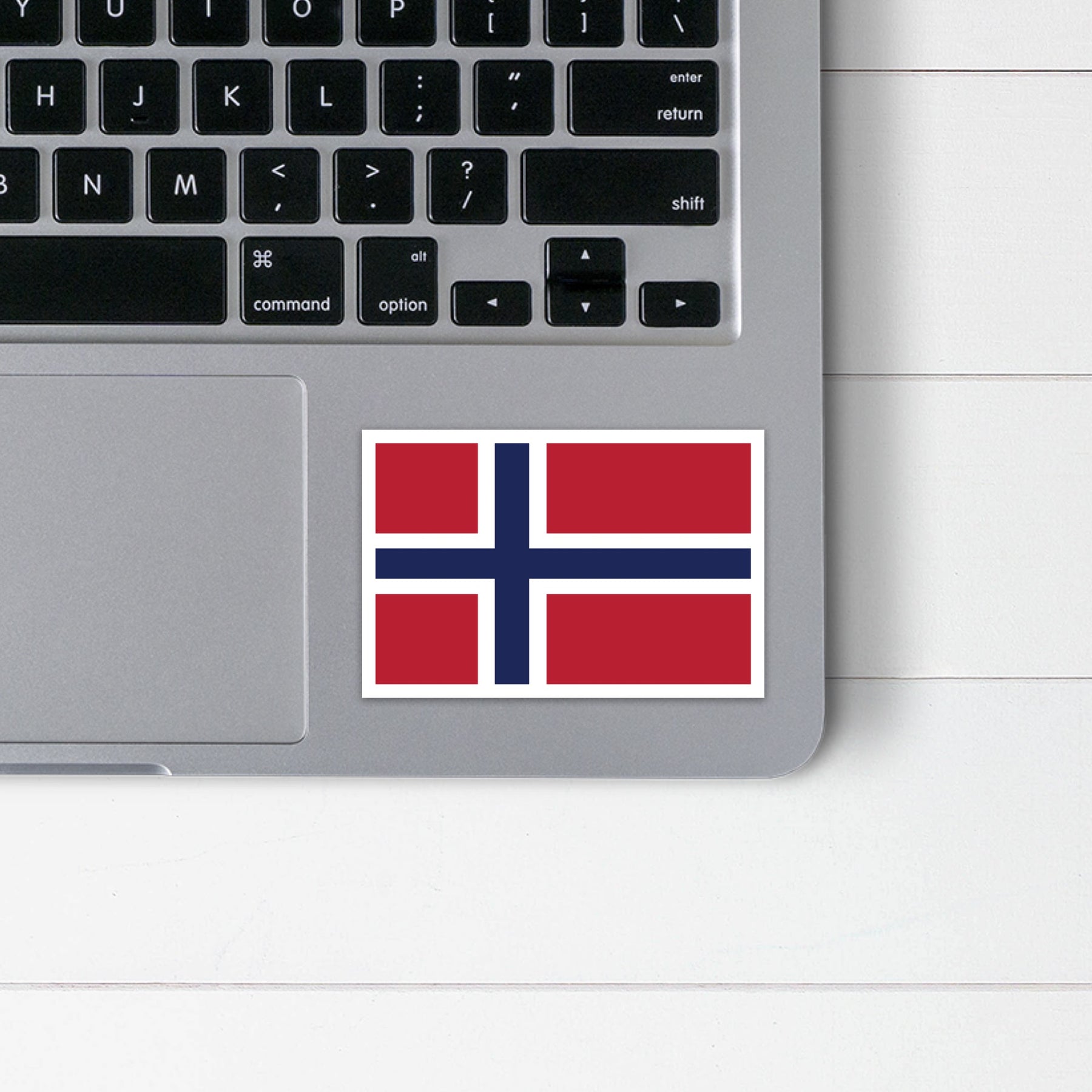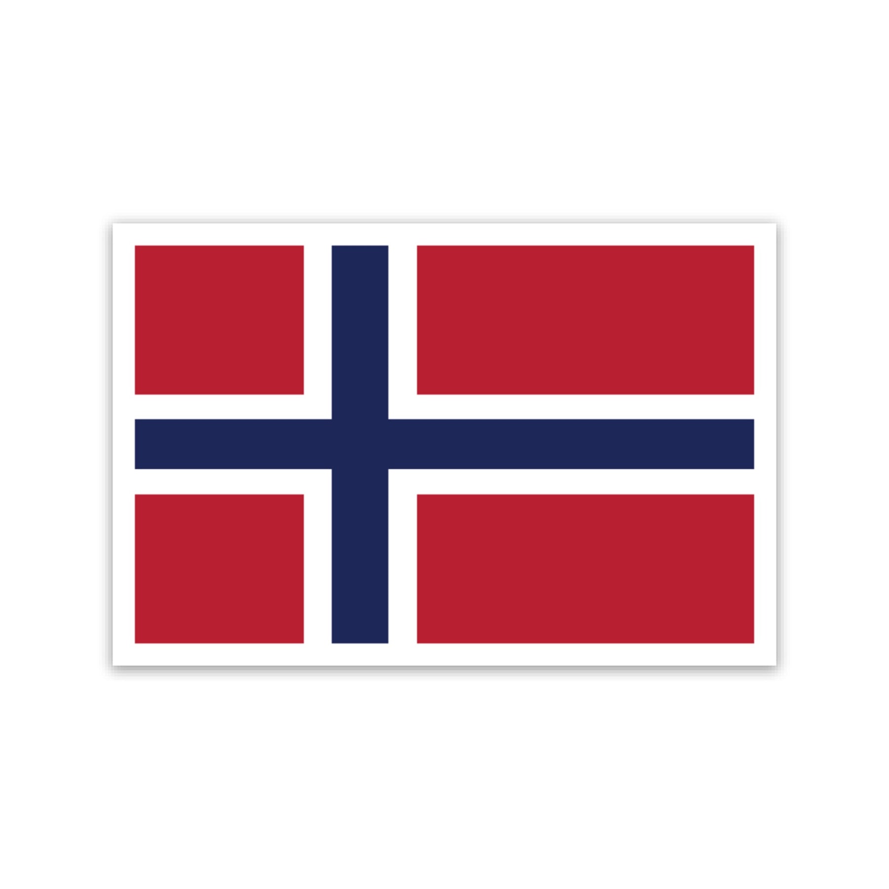 Norwegian flag sticker, for indoor or outdoor use, can be removed from most surfaces without causing damage. Measures 3"x2".