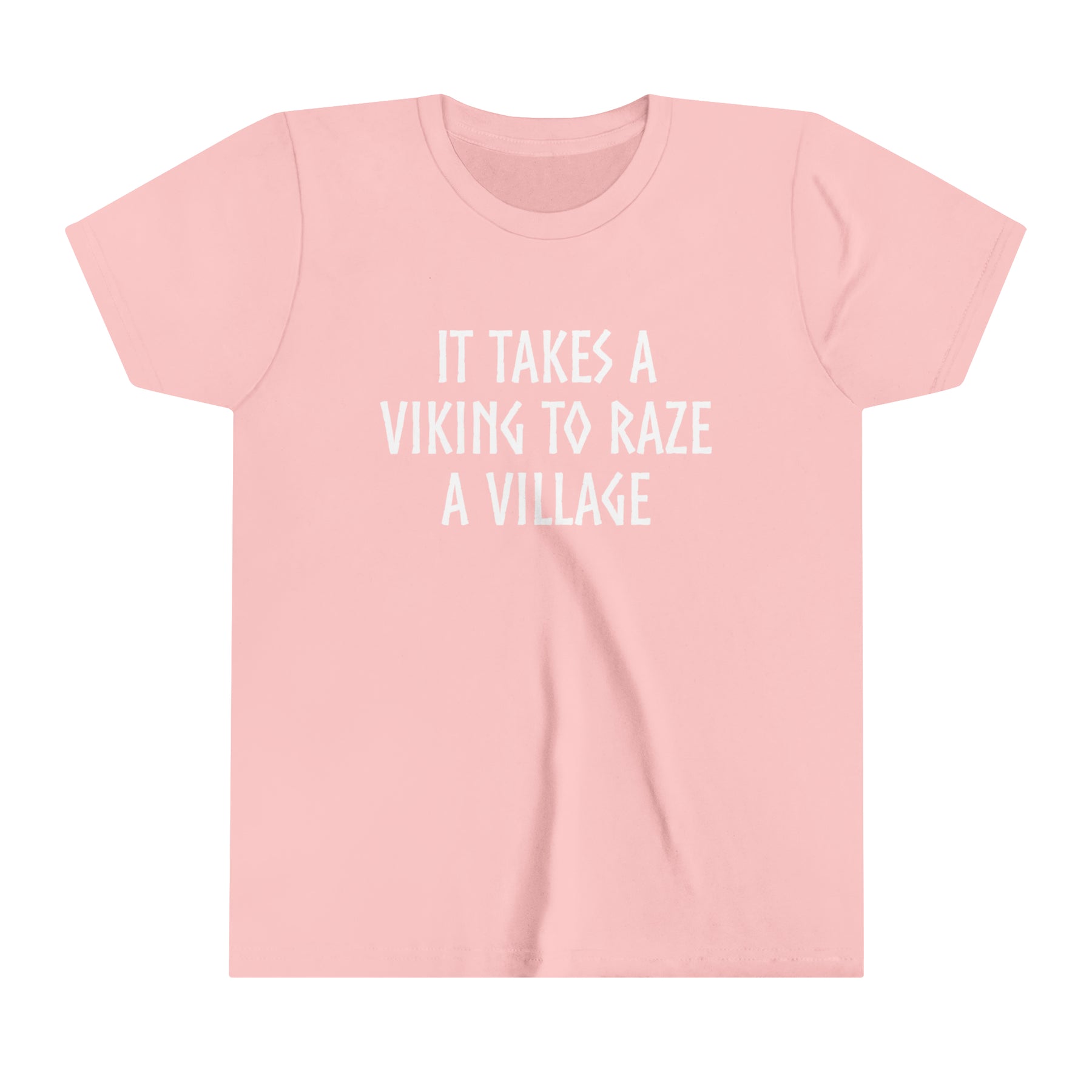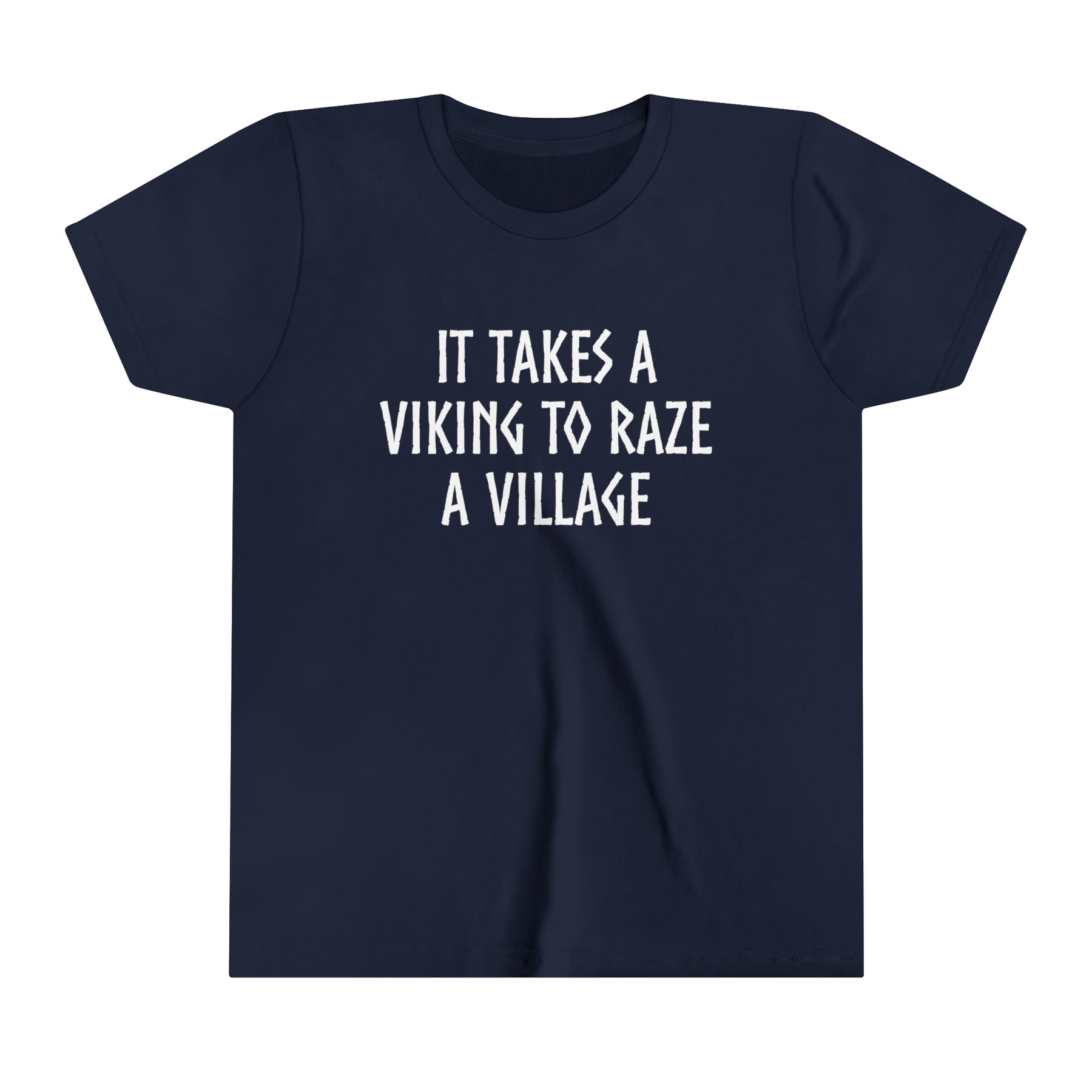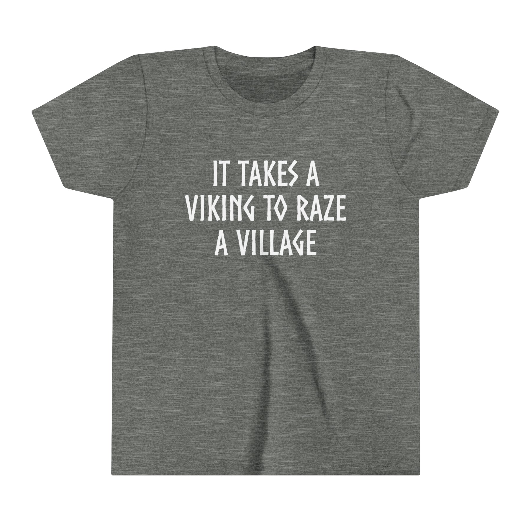 Kids will love this "It Takes A Viking To Raze A Village" short sleeve tee. This lightweight (4.0 oz) side-seamed shirt maximizes comfort all day long.