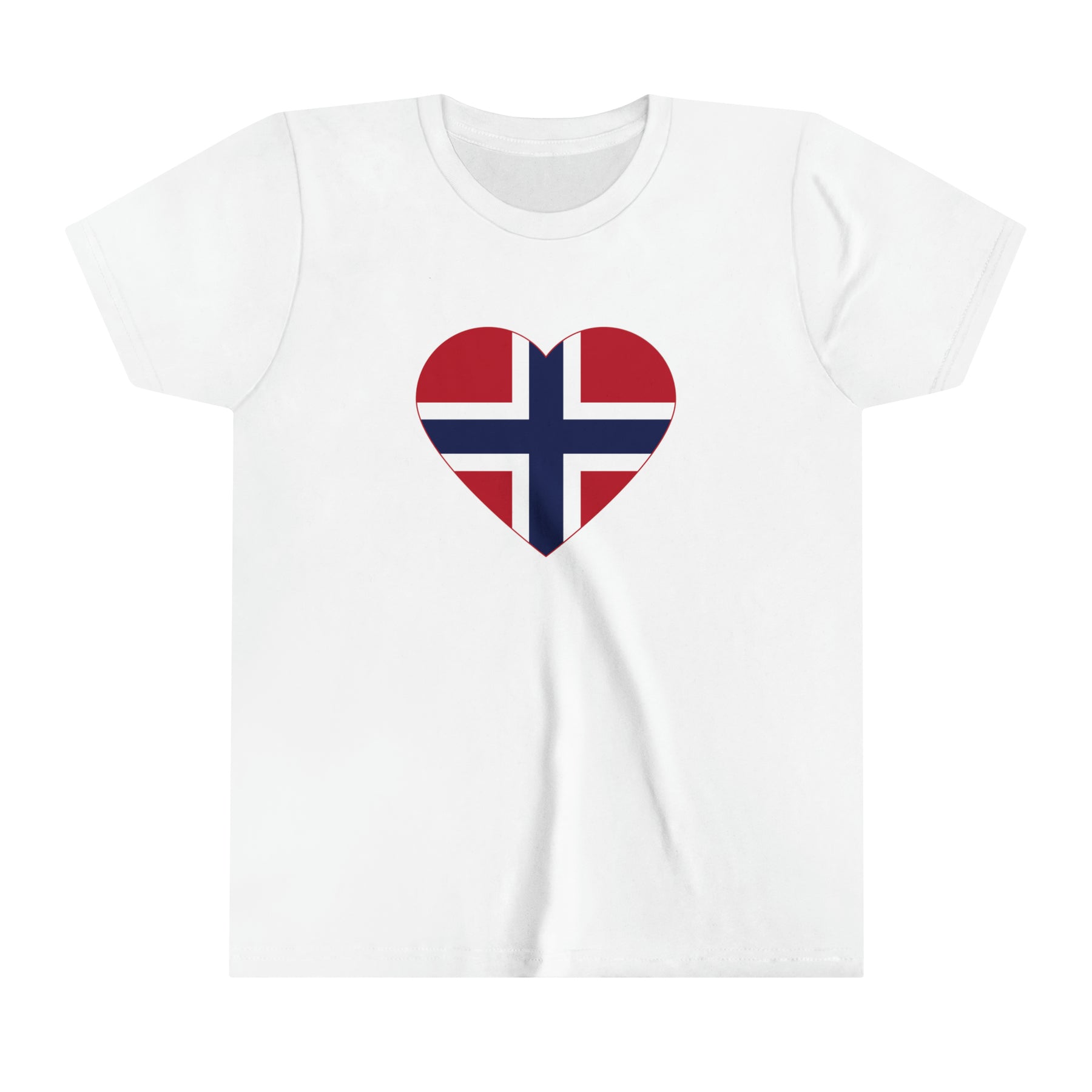 Kids will love this Norwegian flag heart short sleeve tee. This lightweight (4.0 oz) side-seamed shirt maximizes comfort all day long.