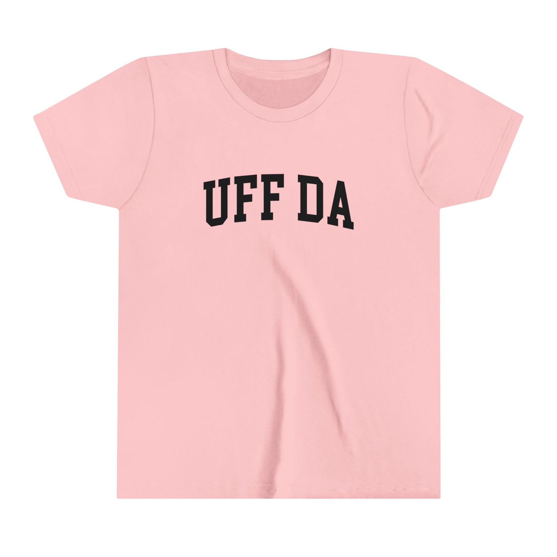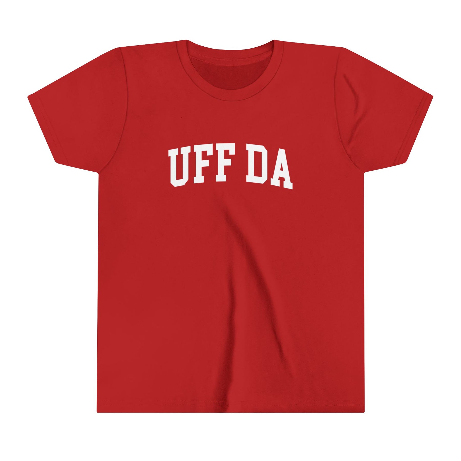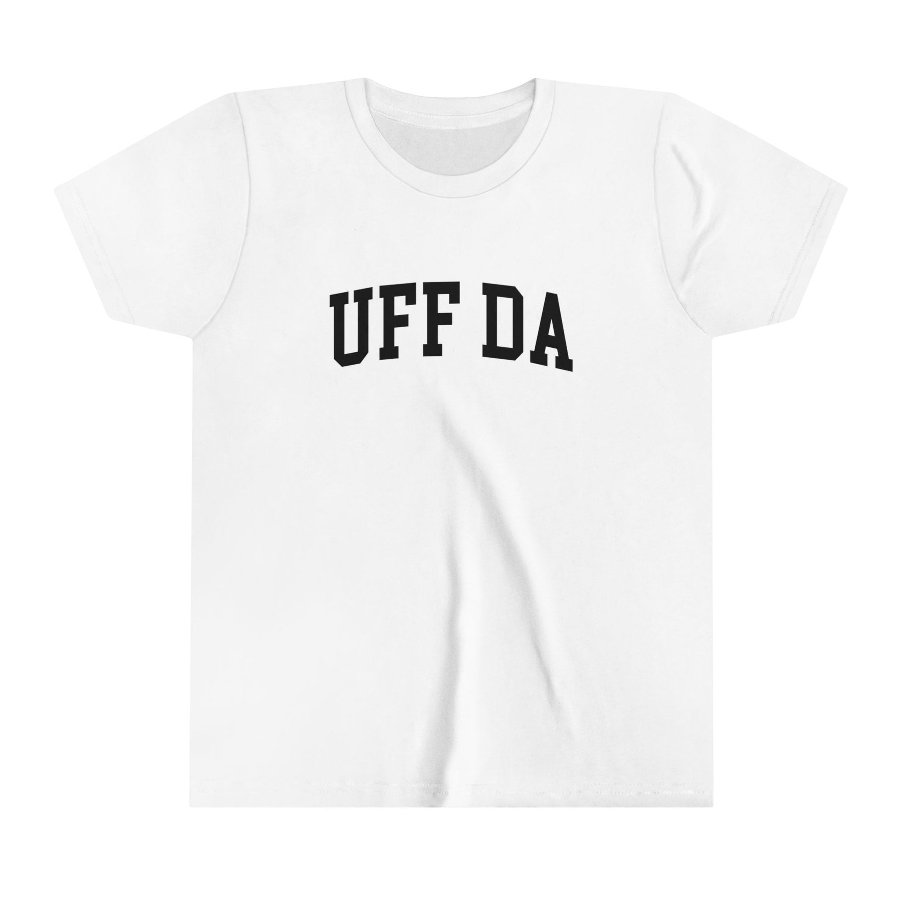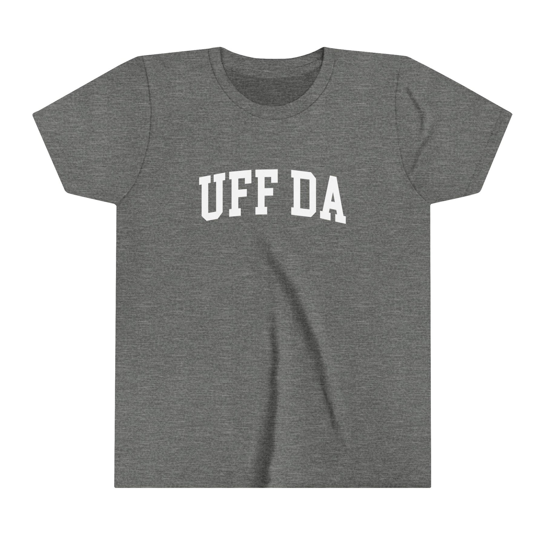 Kids will love this Uff Da university style short sleeve tee. This lightweight (4.0 oz) side-seamed shirt maximizes comfort all day long.