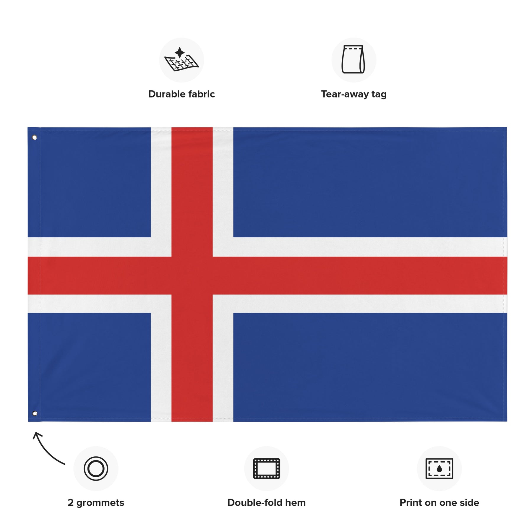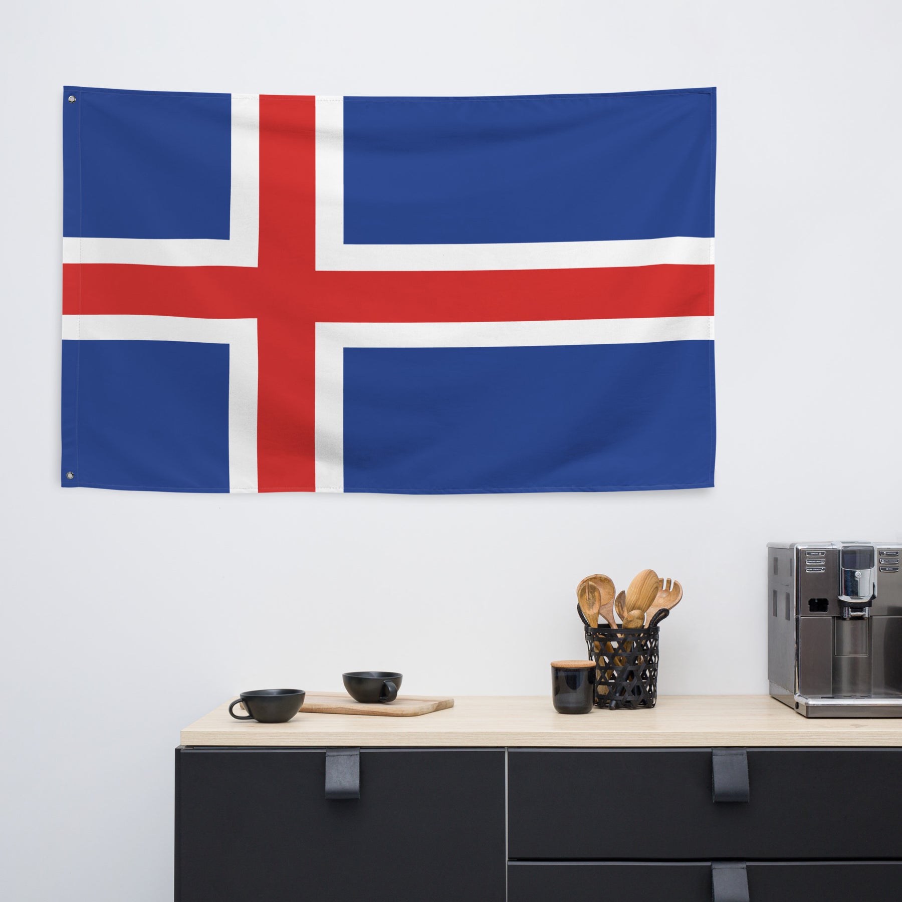 This 36” x 60” Icelandic wall flag is made of 100% polyester knit; equipped with grommets for an authentic look and feel. The flag is a one sided semitransparent print perfect for indoor applications.