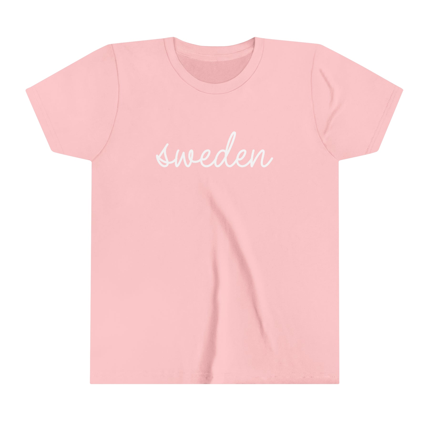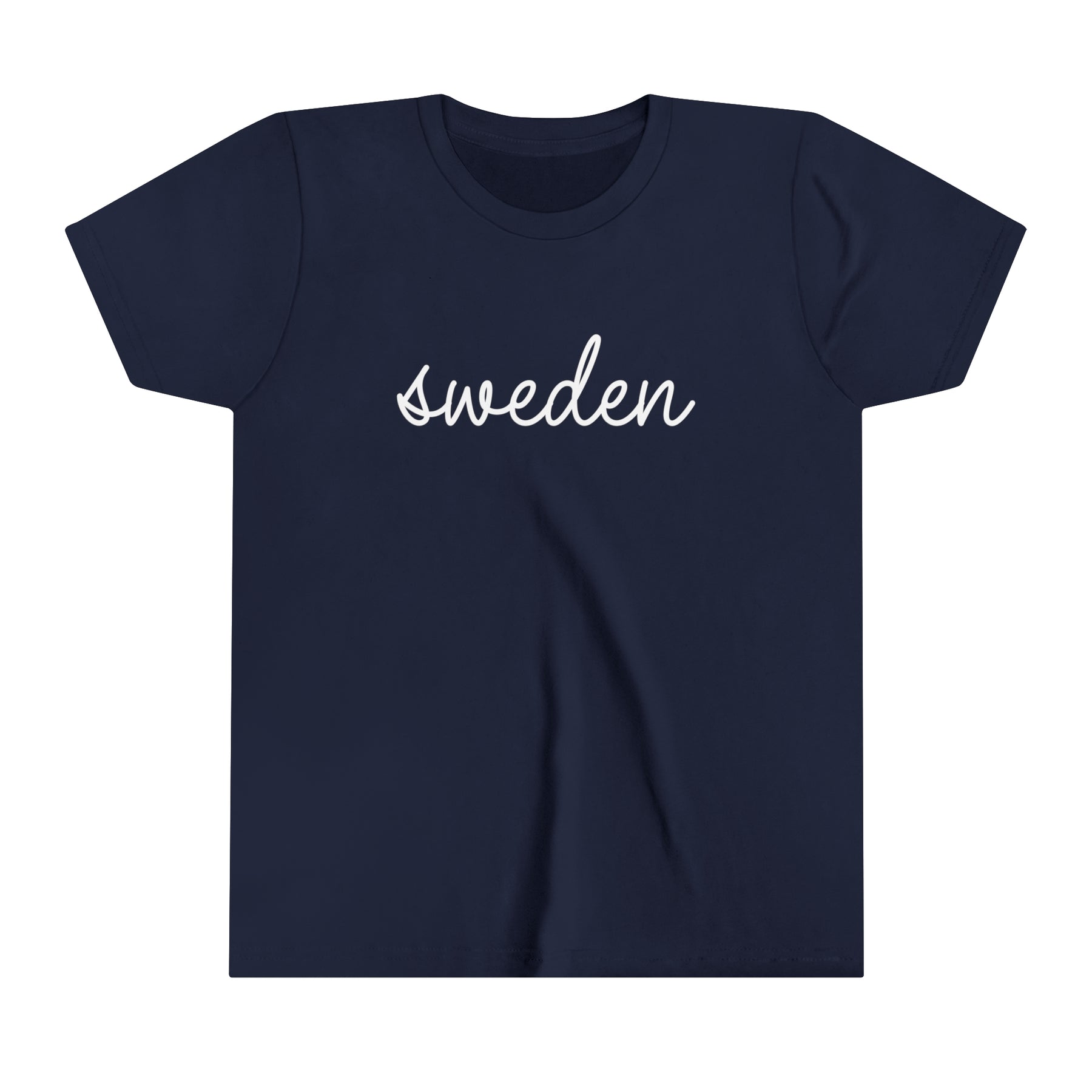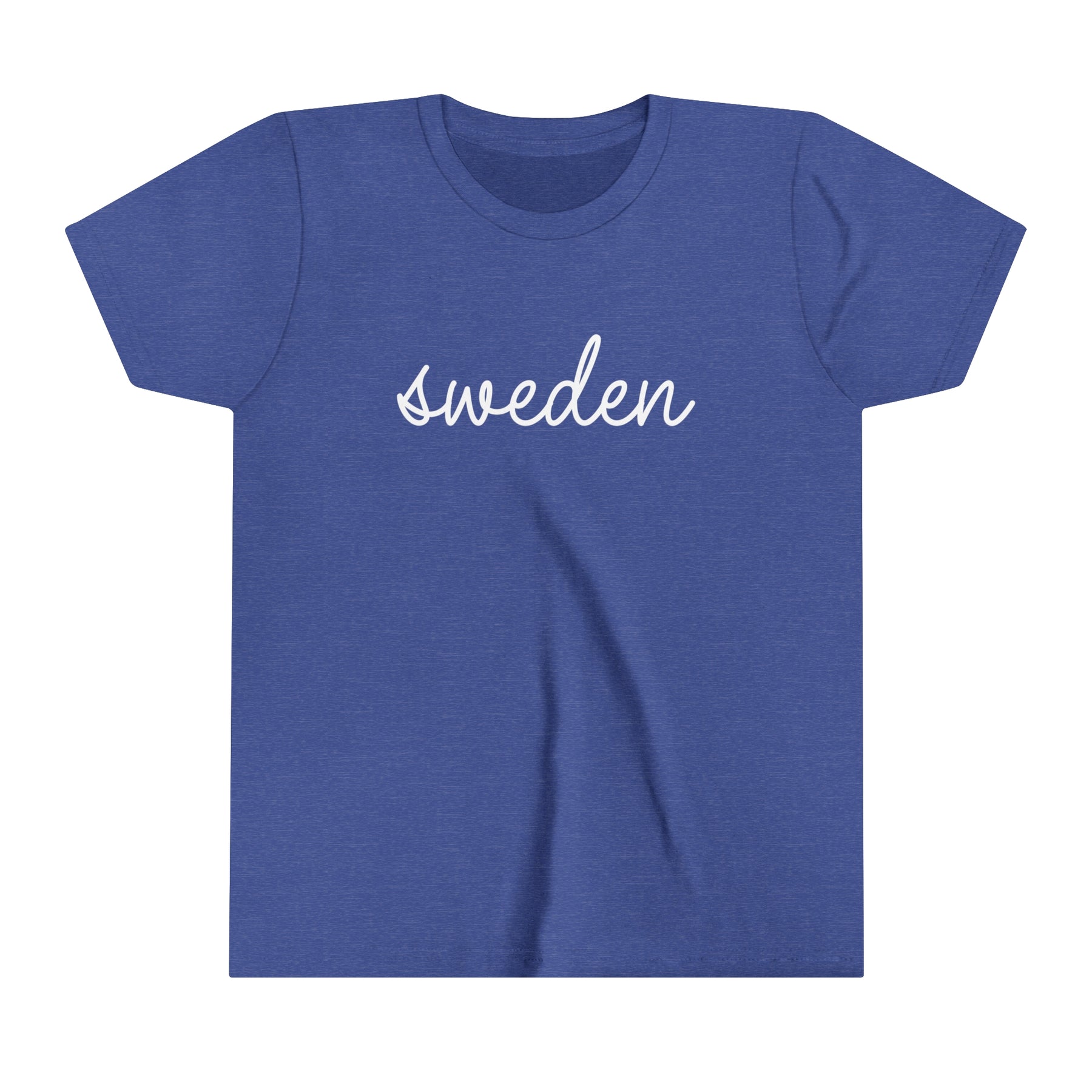 Kids will love this Sweden script font short sleeve tee. This lightweight (4.0 oz) side-seamed shirt maximizes comfort all day long.